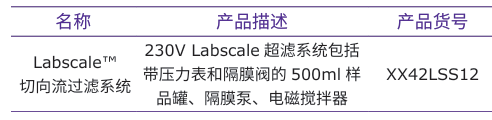 Labscale™小型切向流过滤系统:独特的样品杯壁凹槽设计使回流样品直达底部,避免产生气泡 • 合二为一的磁力搅拌,避免补液透析过程中产生的浓差极化 • 高度整合的设计,可使系统放置于冷柜中低温工作。样品罐容积为:500ml,当需要处理更大体积样品时,可以进行连 续补液 • 同一系统可以同时装 3 块膜包以增加样品处理能力。无需使用不锈钢超滤夹,一体化设计,操作简便。可满足菌体收集,细胞澄清过滤,生物大分子浓缩,杂质分子分离, 连续等体积透析,培养基除热原等多种实验要求。
