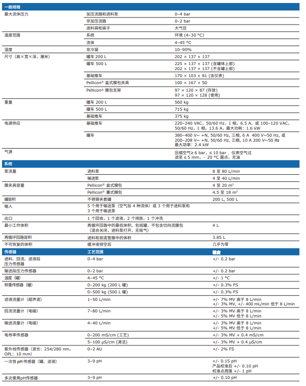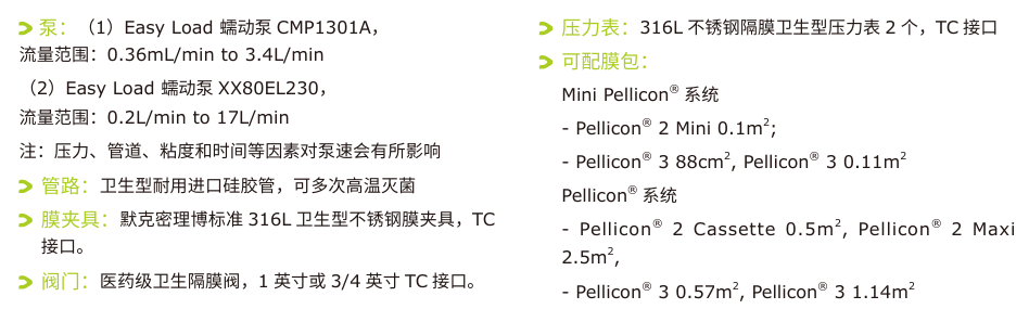 Pellicon® Mini 超滤系统 Pellicon® 超滤系统技术参数: