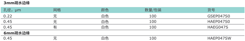 • 边缘3或6mm疏水,可防止过滤样品在膜片边缘的残留,适用于进行抗生素或含抑菌物质样品的微生物检验