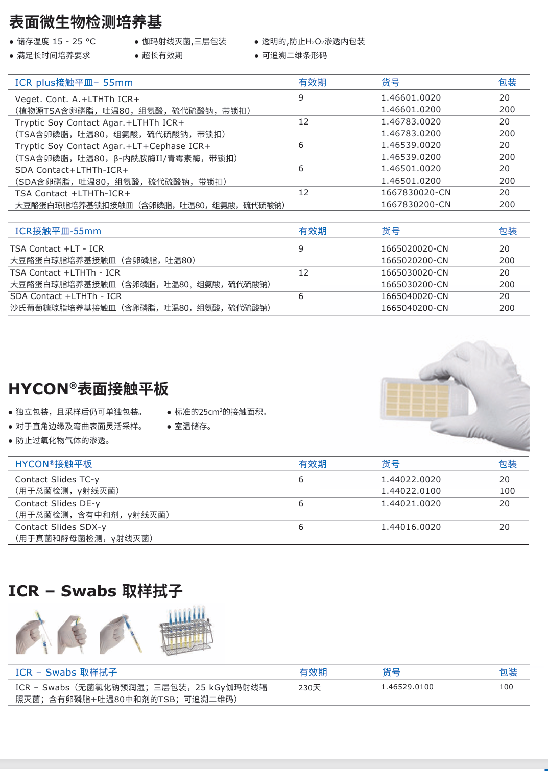 我们提供用于主动式空气监测的沉降和接触平皿装培养基,以及适用于对应空气监测系统的琼脂试纸条。各种各样的沉降平皿制剂可在生产过程中关键点实现连续被动监测。我们针对无菌生产的关键洁净室,提供了ICR拭子、三层袋装和伽马辐照的接触和沉降平皿。