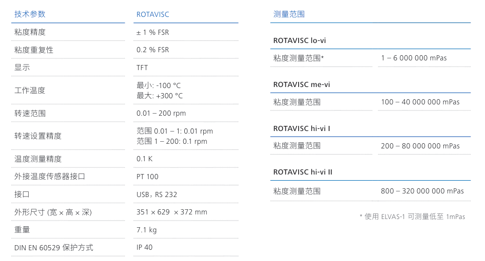 ROTAVISC lo-vi 粘度测量范围: 1 – 6 000 000 mPas