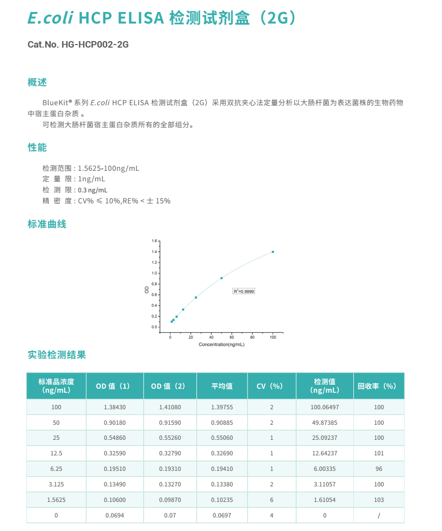 | HG-HCP002-2G | Ecoli HCP ELISA 检测试剂盒(2G) | 96孔 |