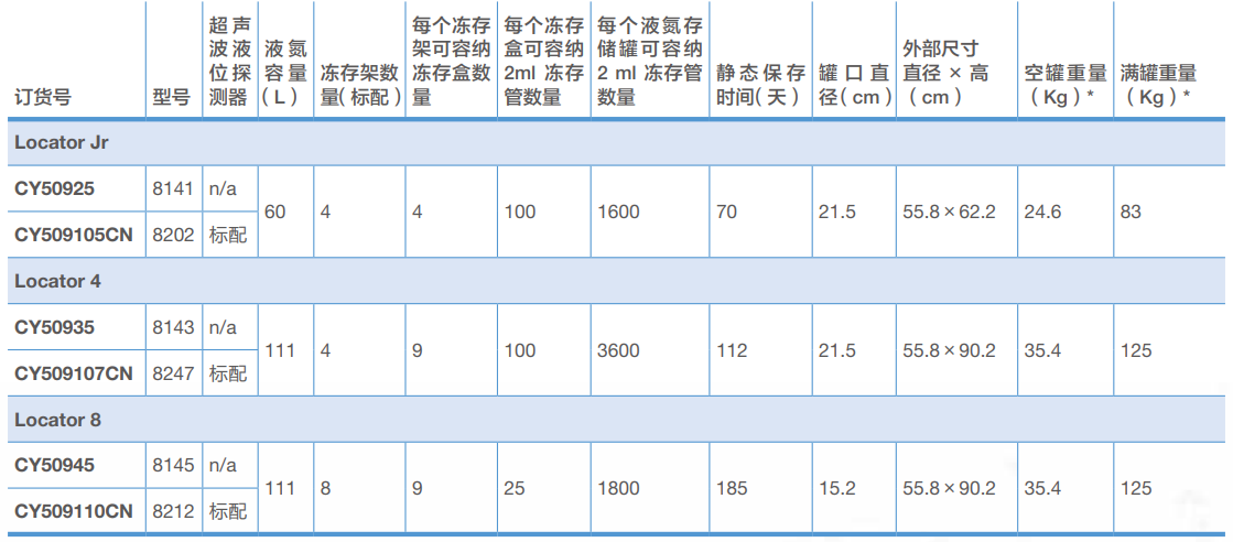 • Locator™ 系列有三种尺寸, 最多能容纳 3,600 只冻存管 • 独有的悬挂冻存架和箱隔设计,可轻松标记和取出样品