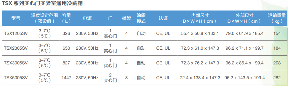 采用天然的 R290 制冷剂和全水发泡泡沫,使得 TSX 系列符合 EU F-GAS 法规、美国环保署的《重要新替代品政策》(SNAP) 以及其他的全球法规