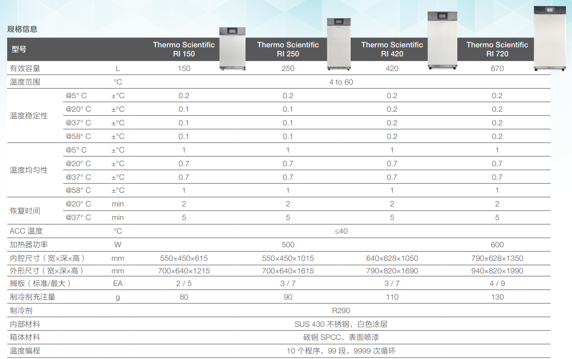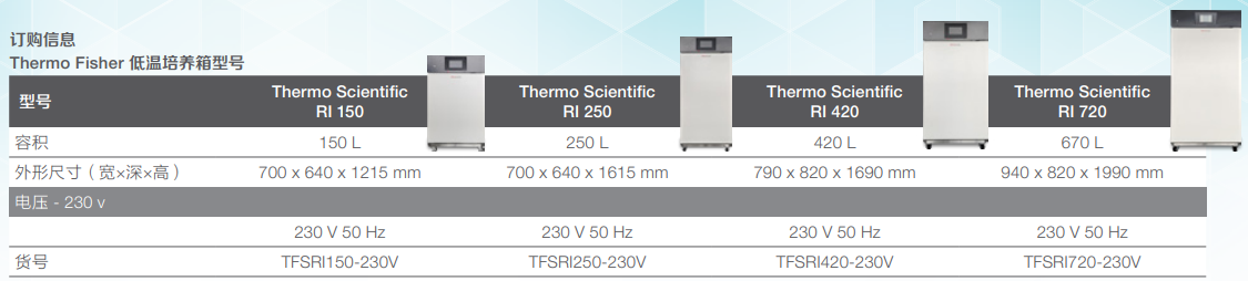 Thermo Scienti?c 低温培养箱有 4 种规格可供选择:两款台式(150 L、250 L)及两款容量更大的落地式 (420 L、670 L)