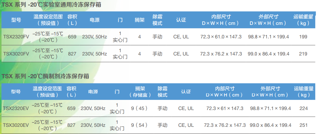 采用天然的 R290 制冷剂和全水发泡泡沫,使得 TSX 系列符合 EU F-GAS 法规、美国环保署的《重要新替代品政策》(SNAP) 以及其他的全球法规。