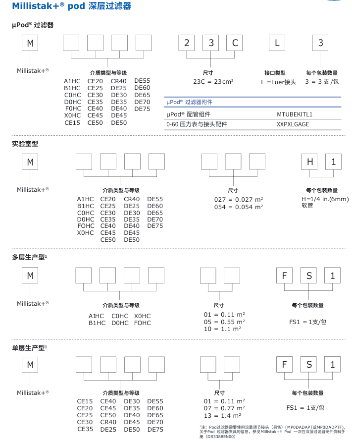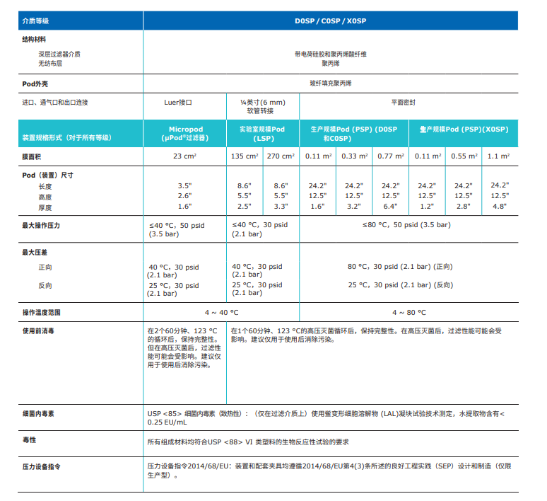 Millistak+HC Pro®深层过滤器(全人工合成介质) Millistak+® HC Pro是高载量全人工合成材质系列的深层过滤介质,, 具有洁净、批次间差异小,降低50%冲洗水量等优点。由多层介质组 成,用于单级和两级澄清应用。有卓越的载量和优异的杂质去除能力。