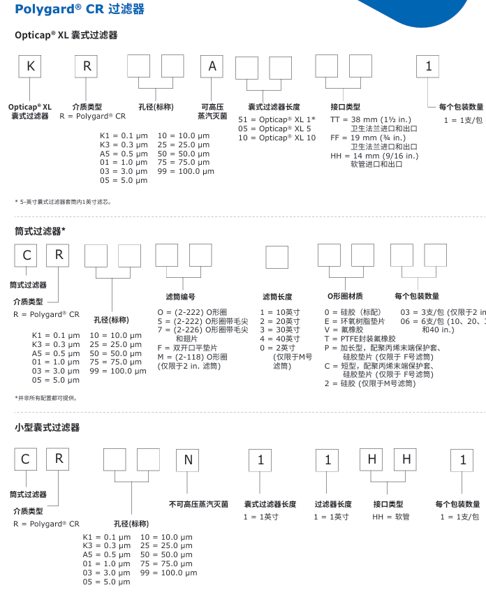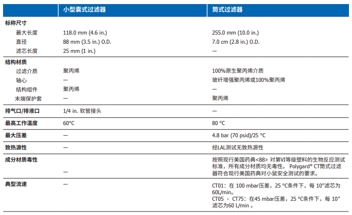 Polygard® CR系列 标称额定孔径过滤器,设计用于去除液体和气体中的颗粒。Polygard® CR过滤介质的梯度密度结构为滤器提供了最大的过滤载量,且全聚丙 烯结构的可提取物水平低,具有广泛的化学兼容性。孔径范围为0.1 ~ 100.0 µm。