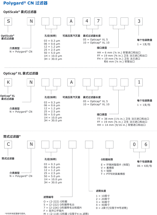 Polygard® CN系列 标称额定孔径过滤器,设计用于去除液体和气体中的颗粒。Polygard® CN过滤介质的褶皱构造最大限度地降低了过滤过程中的压差,全聚丙 烯结构的可提取物水平低,且具有广泛的化学兼容性。使用该产品可以 有效地减少颗粒和微生物,增强下游过滤器的性能。孔径范围为0.3 ~ 30.0 µm。
