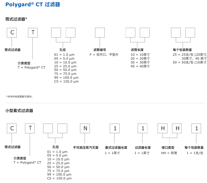 Polygard® CT系列 由具有梯度密度分布的聚丙烯介质构成,设计用于多种液体的初次澄清 应用。该型号复合模式滤膜将具有两种不同标称孔径截留值的介质安装 在一个滤筒中。该技术最大限度地提高了承污能力,且压差极低,使用 寿命长。孔径范围为1.0 ~ 150.0 µm。