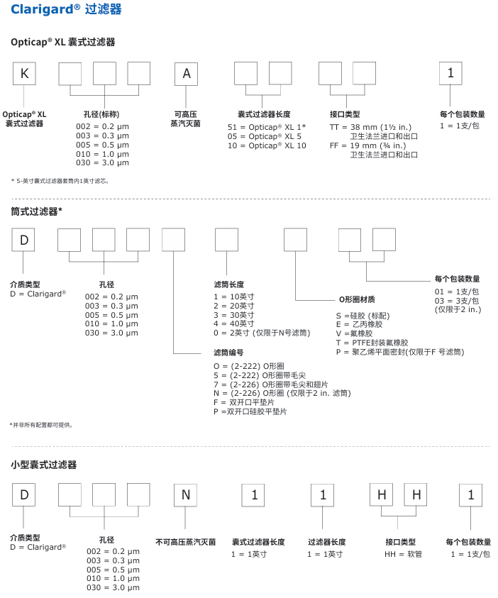 Clarigard®系列 由梯度密度分布的聚丙烯介质构成,用于工艺流体的澄清和预过滤。 99.99%截留特性使其非常适合于保护关键下游工艺步骤,例如膜过滤 器或层析前。梯度密度结构为滤器提供了最大的过滤载量,聚丙烯结构 的可提取物水平低,且具有广泛的化学兼容性。孔径范围为0.2-3.0 µm。