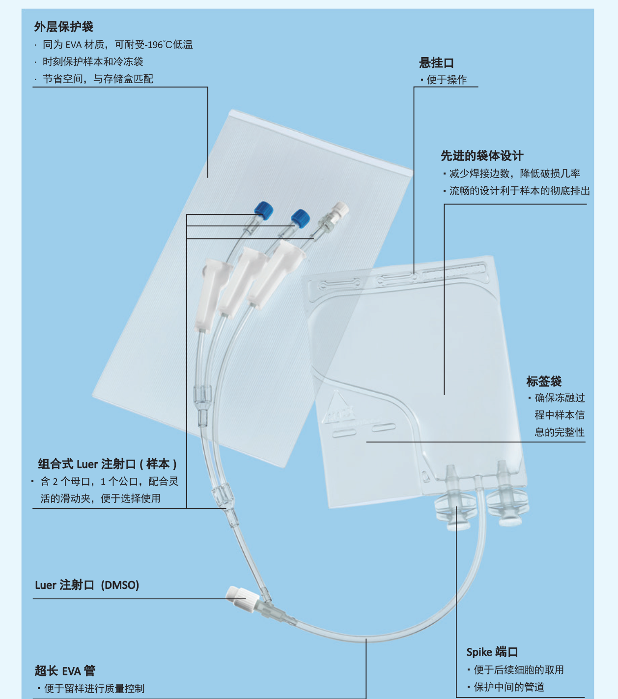 l GMP级质量保证:从原料严格把关,稳定的EVA材质可长久耐受低温(-196°C)储存