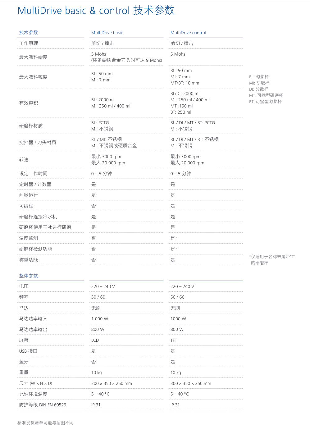 对于每一种破碎任务,MultiDrive 均可提供更有针对性的样品杯。 在 MultiDrive control的样品杯中,有用于干法研磨的研磨杯 (MI)、用于湿法研磨的匀浆杯 (BL)、带转子-定子系统的分散杯器 (DI) 以及可高压灭菌的可抛型干磨杯 (MT 150) 和可抛型匀浆杯 (BT250)。