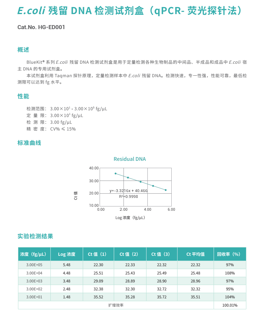 HG-ED001 | Ecoli 残留DNA检测试剂盒(qPCR-荧光探针法) | 100 Reactions |