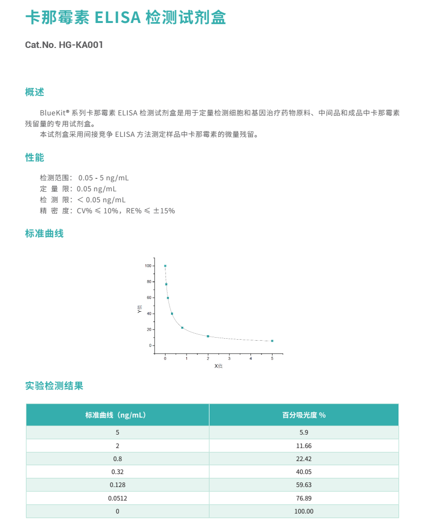 HG-KA001 | 卡那霉素 ELISA 检测试剂盒 | 96孔 |