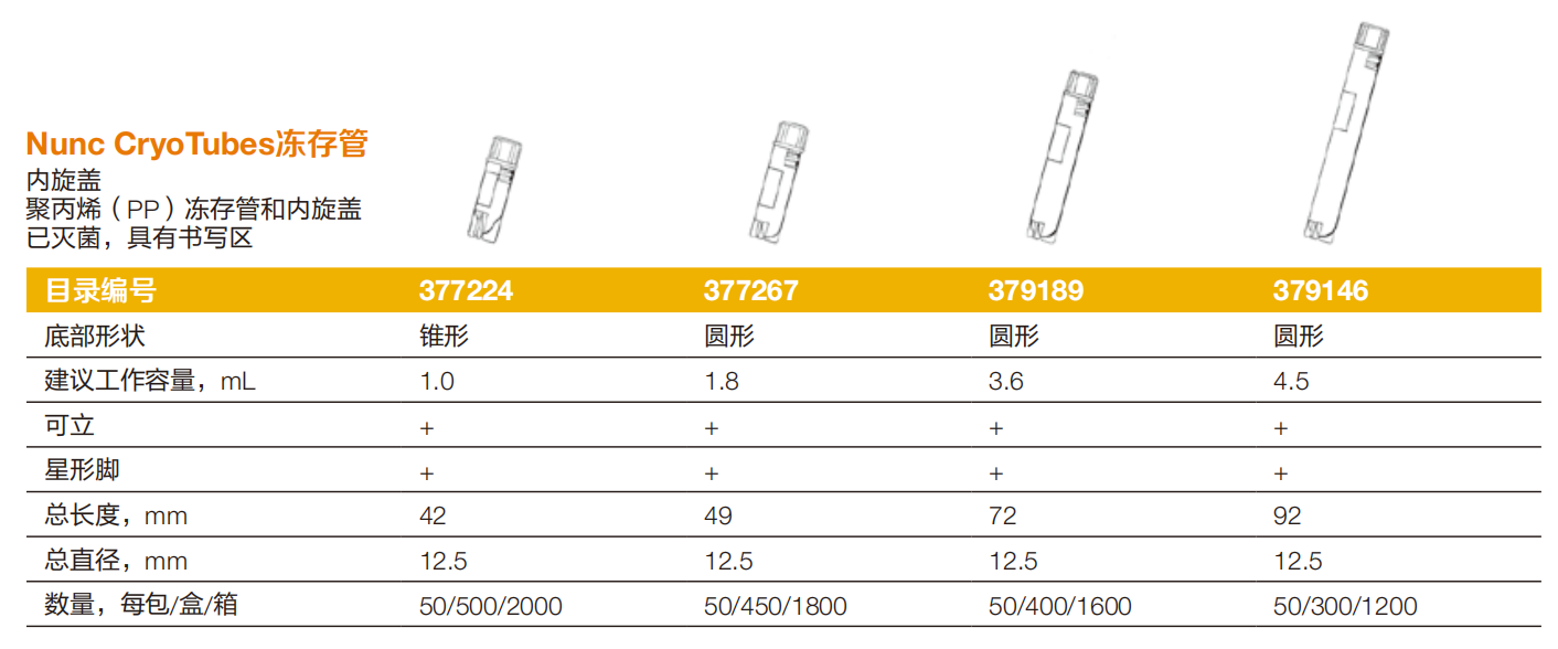 • 具有星形脚管底,在CryoTube冻存管架中可以进行单手操作