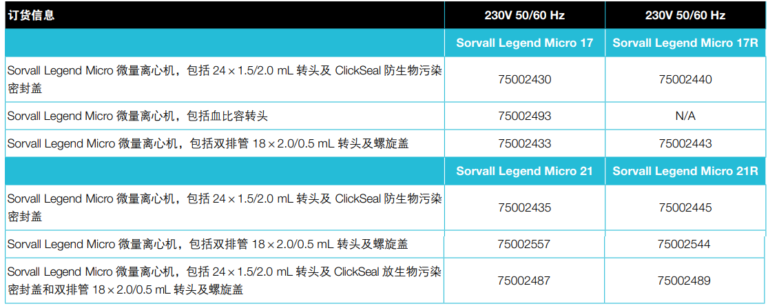有通风型及制冷型两种规格, Thermo Scientific Sorvall Legend Micro 17 & 21可用于几乎所有的微量离心应用。
